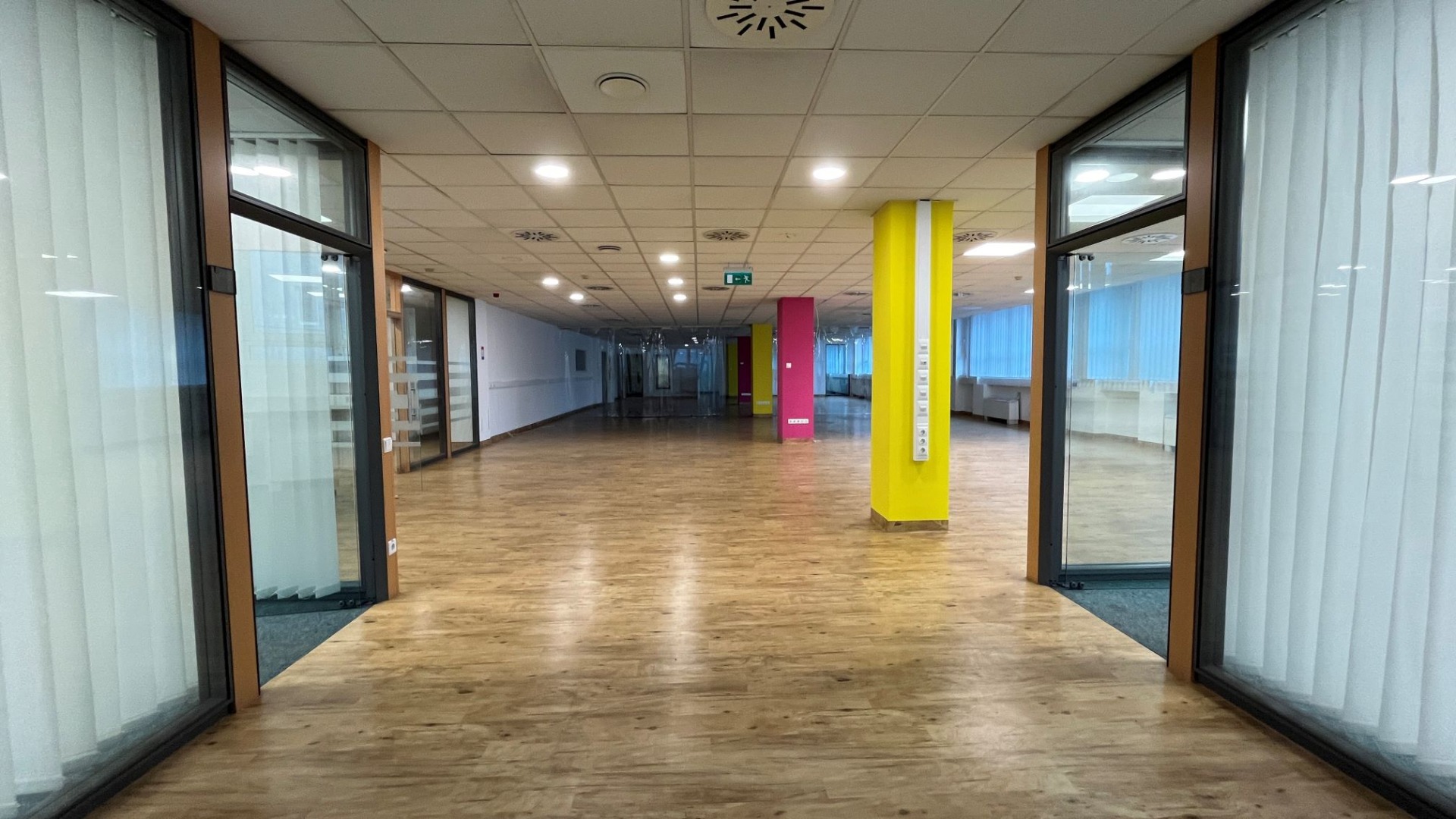 Irodaházunk 1. emeletén összesen 665,58 m2 alapterületen egylégterű, természetes fényű irodaterület, kisebb irodák ill. egy hangszigetelt stúdió várja leendő bérlőjét. Kizárólagos használatú konyha-étkező, női- és férfi wc-mosdó valamint praktikus tároló helyiségek is a bérlemény részei. A hűtés-fűtést 4 csöves fan-coil rendszer, a természetes fényt hőszigetelt ablakok biztosítják. A bérlemény részei az álmennyezet, tűzjelző berendezés, kiépített gyengeáramú végpontok, kaputelefon.